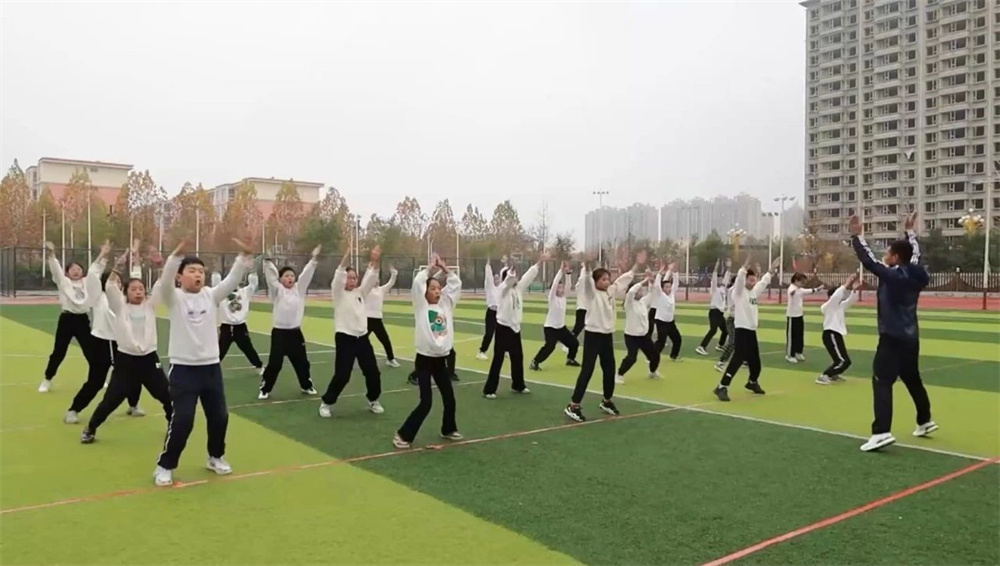 万荣县体育教师朱瑞杰在执教《立定跳远》一课 (资料照片)
