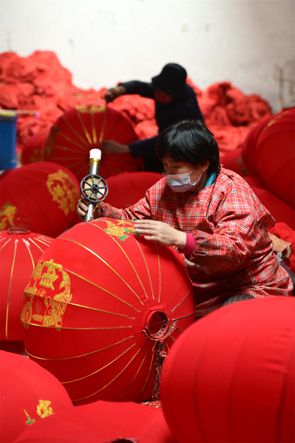 1月5日,在河北省石家庄市藁城区屯头村,一家宫灯企业的工人制作宫灯。春节临近,藁城区屯头村的宫灯生产厂家加紧生产,供应节日市场。藁城宫灯历史悠久、产品丰富,2006年被列入河北省级非物质文化遗产名录。 新华社发(陈其保 摄)