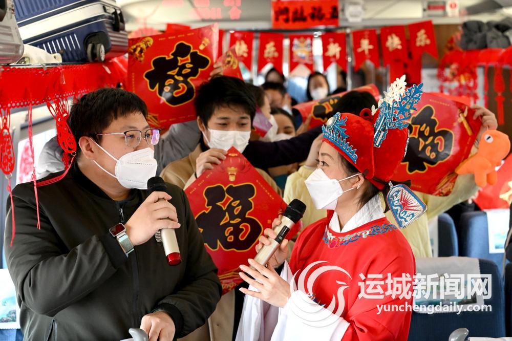 1月6日,中国铁路上海局集团有限公司合肥客运段组织工作人员,将G8341次列车装扮一新,在列车上举办“情暖回家路”主题活动,让乘客在旅途中感受节日氛围。 新华社记者 黄博涵 摄