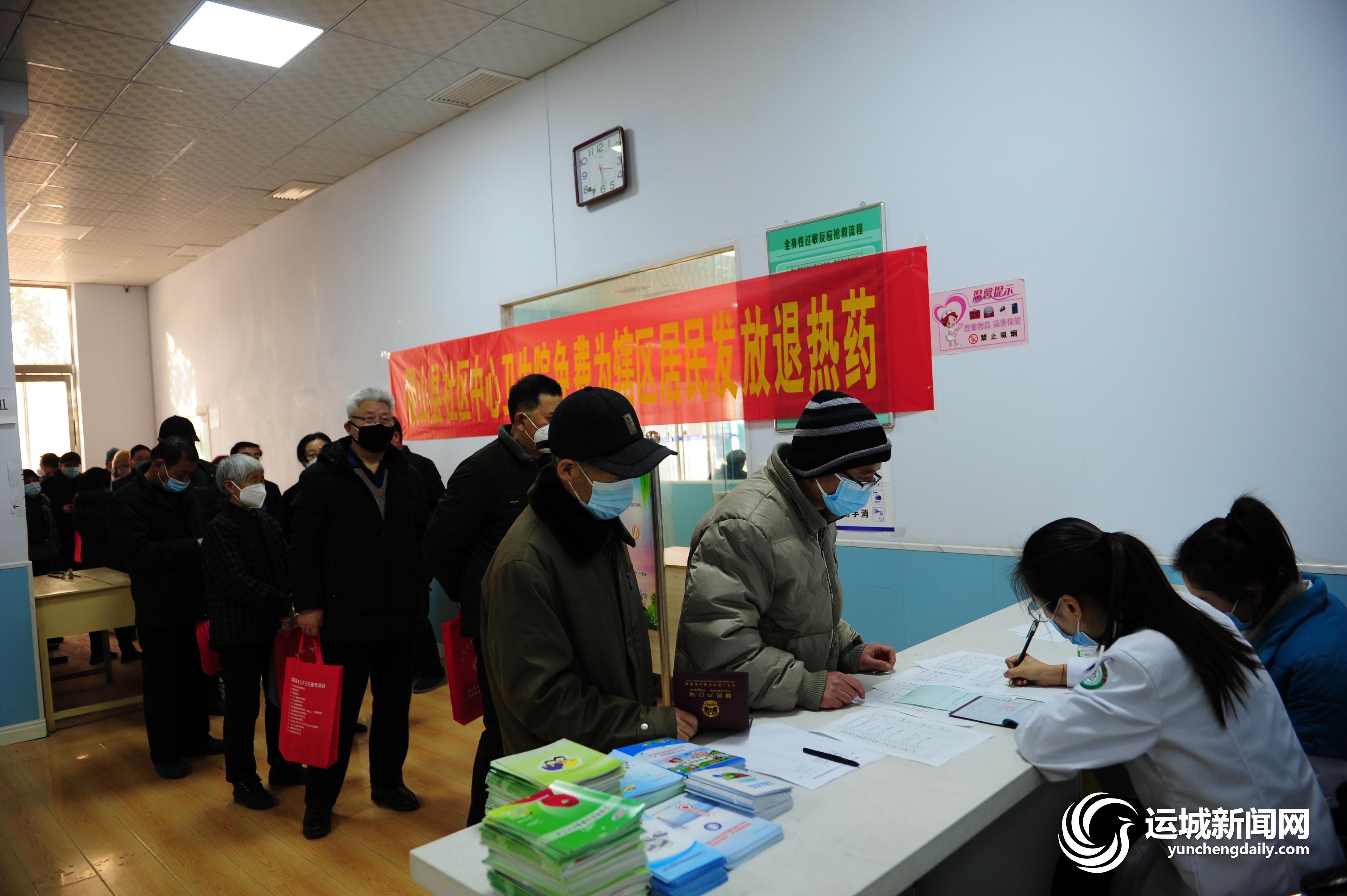 1月7日,稷山县社区中心卫生院医护人员在为社区居民免费发放退烧药,同时宣传科学用药常识等,解决群众安全用药问题,提高群众科学应对新冠病毒感染能力。