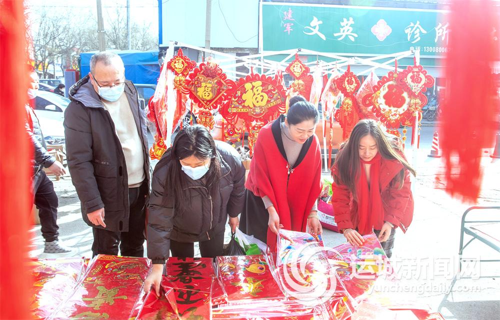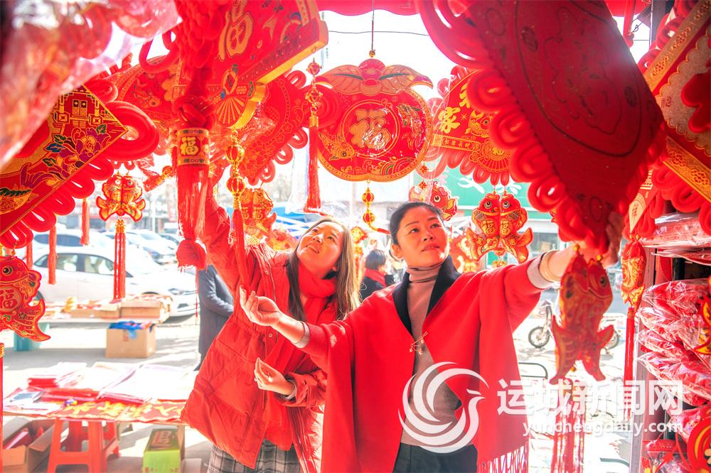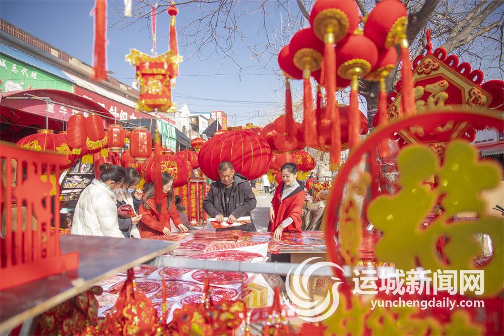 1月6日,运城经济技术开发区文化市场,市民在选购灯笼、春联、窗花贴纸以及各种春节文化用品。