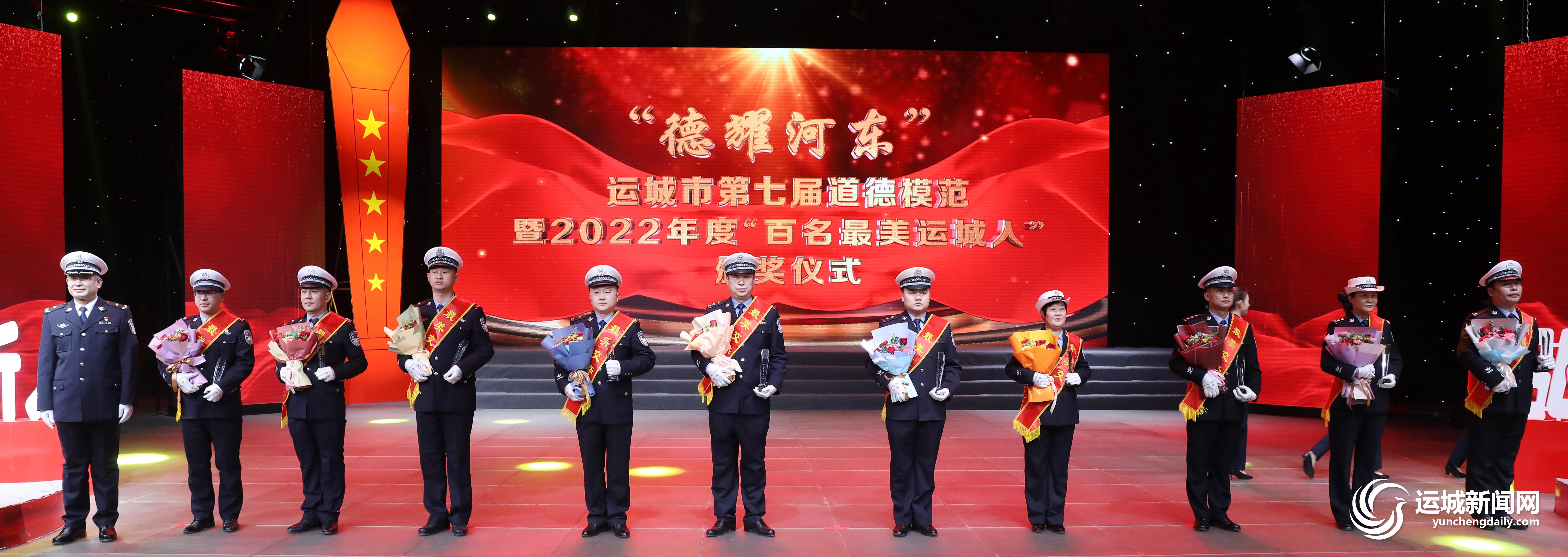 ▲2022年度“百名最美运城人”的最美交警走上“德耀河东”的颁奖台,他们从身边小事做起,将道德的力量无限传递。