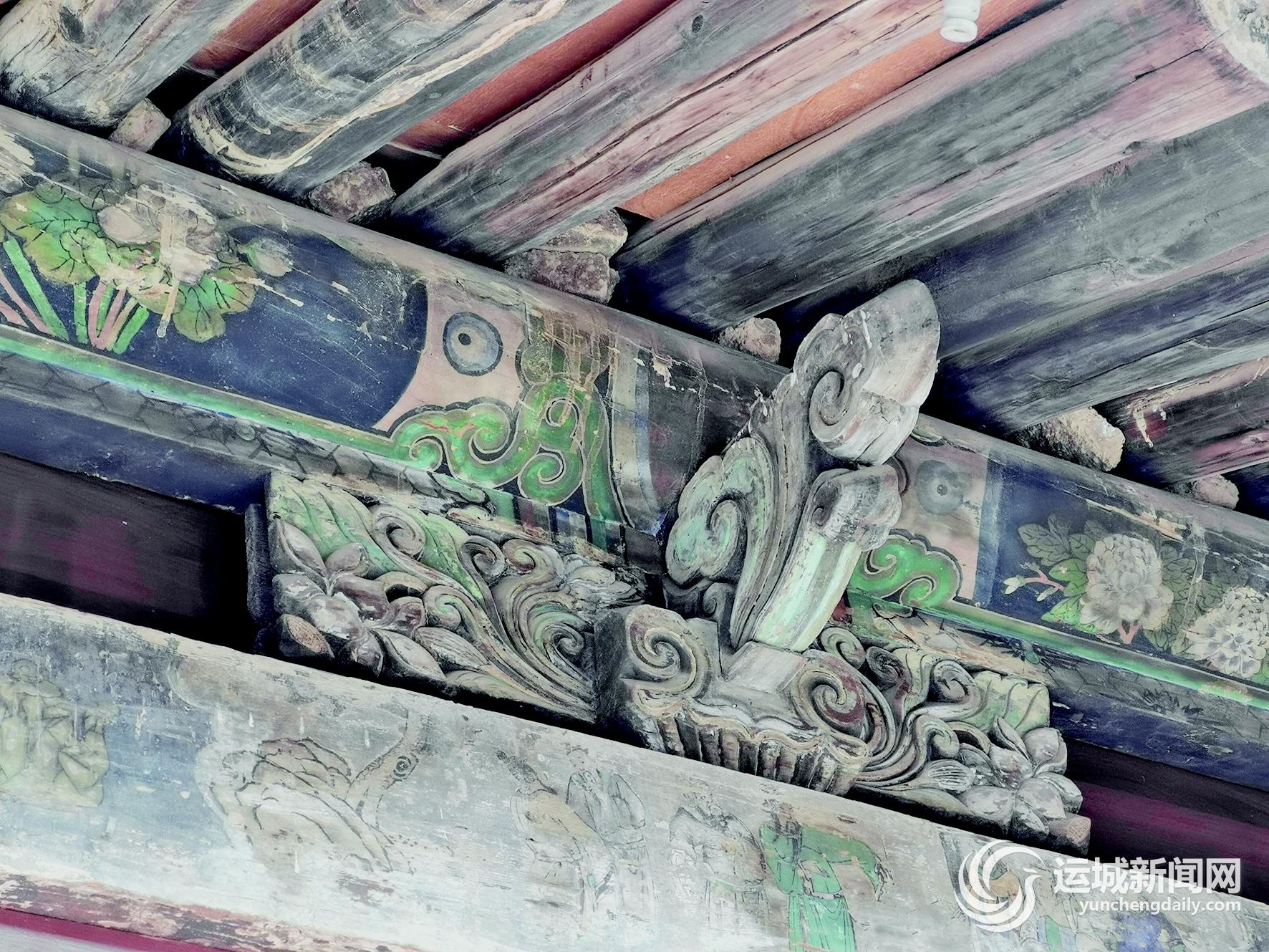 穿过拱门,便见到了修缮一新的献殿。细观献殿,青瓦覆顶,斗拱飞檐,雕梁画栋,彩绘绚丽,可想象当时整座庙宇的辉煌。