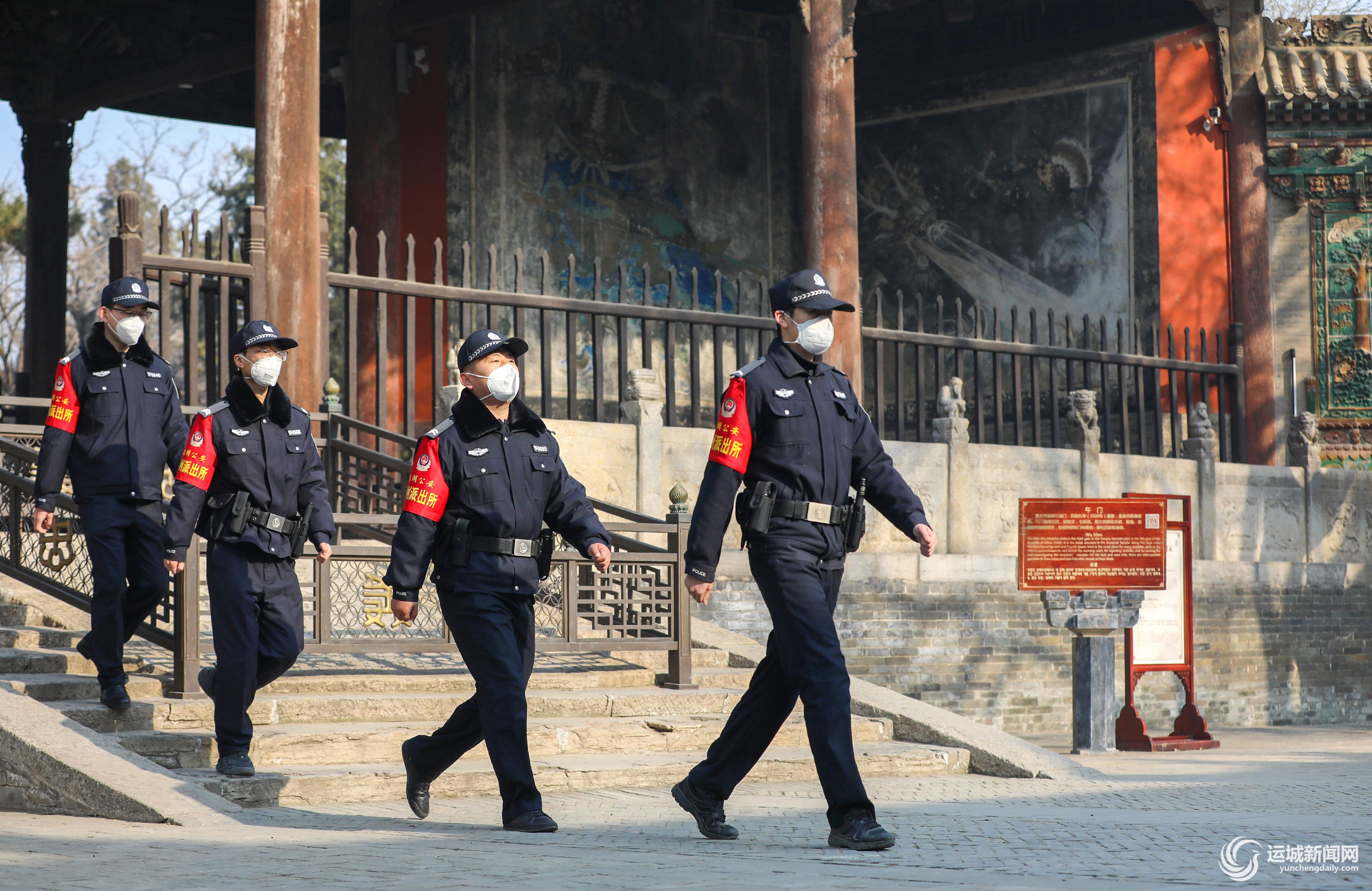 1月8日,盐湖公安分局解州派出所民警在解州关帝庙景区进行巡逻检查。