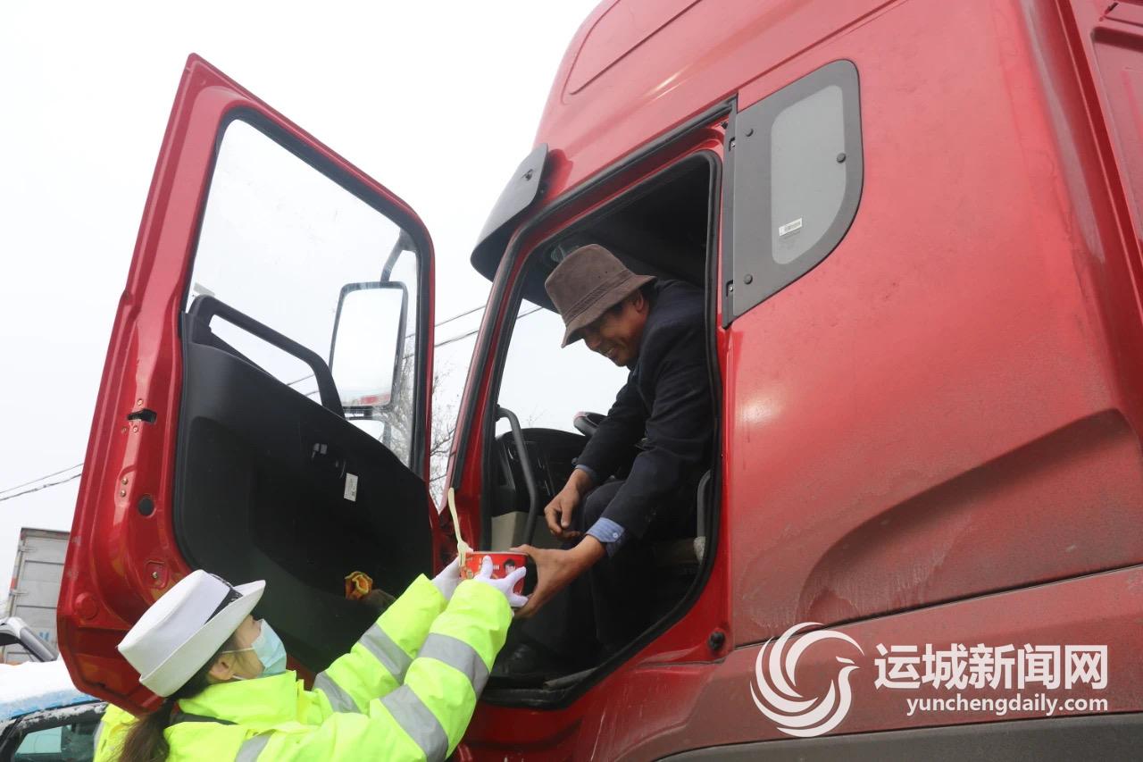 面对交警的暖心之举,一名滞留的货车司机敞开心扉:“我们很多司机都是外地过来的,对这边的山路和天气情况也不熟悉,你们能给我们送来吃的、用的以及热水,很辛苦,感谢运城好交警!”