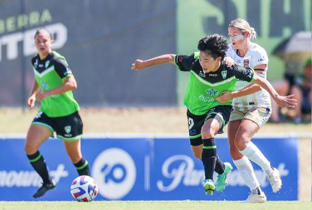1月14日,吴澄舒(中)在比赛中拼抢。 当日,在2022~2023赛季澳大利亚女超联赛第10轮比赛中,效力于堪培拉联队的中国球员吴澄舒在比赛中打进一球,帮助球队主场以5比1战胜纽卡斯尔喷气机队。这是她加盟澳女超联赛后打进的首粒进球。新华社发(储晨 摄)