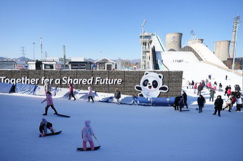 1月15日,游客在首钢滑雪大跳台下的单板乐园体验趣味滑雪。 2023年元旦开启的“首钢园冰雪汇”,让北京首钢滑雪大跳台成为大众冰雪乐园。游客可以在北京冬奥赛场体验“雪圈冲浪”以及雪地平衡车等多种趣味冰雪项目。这是首钢滑雪大跳台在北京冬奥会后举办的首个冰雪嘉年华项目,以“相约大跳台,畅游冰雪汇”为主题,让冬奥遗产持续得到利用。 新华社记者 鞠焕宗 摄