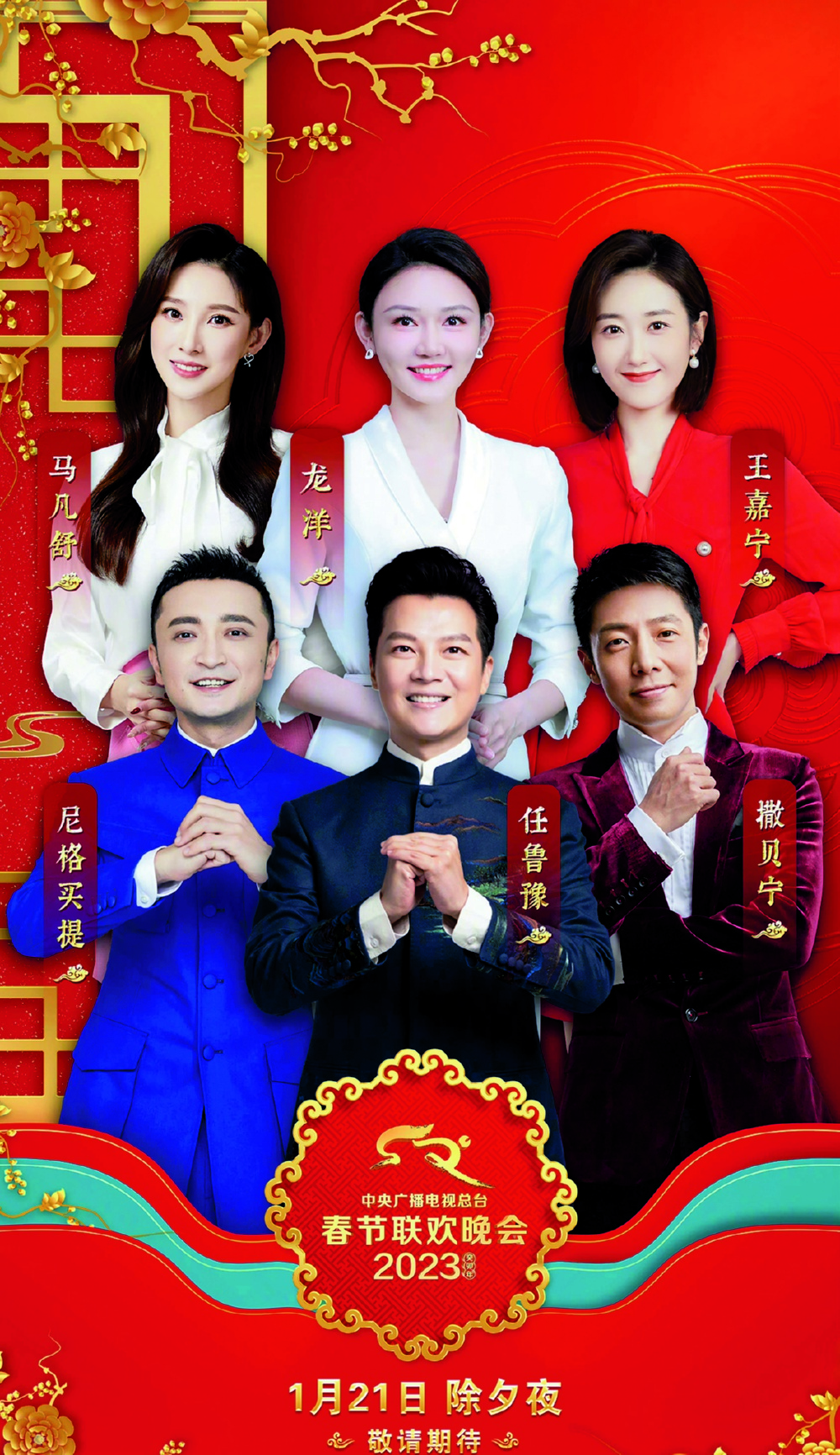 1月16日,中央广播电视总台《2023年春节联欢晚会》正式官宣技术创新和节目亮点,官宣主持人阵容,并首次发布春晚舞美宣传片和吉祥物“兔圆圆”动画短片。现场,2023年春晚主持人阵容首次发布,任鲁豫、撒贝宁、尼格买提、龙洋、马凡舒、王嘉宁将成为今年兔年春晚的主持人选。其中,新人王嘉宁为首次担任春晚主持人。