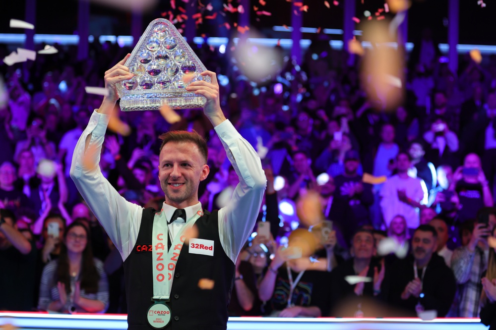 当日,在英国伦敦举行的2023斯诺克大师赛决赛中,英格兰选手特鲁姆普以10比8战胜威尔士选手威廉姆斯,获得冠军。 新华社发(翟政 摄)