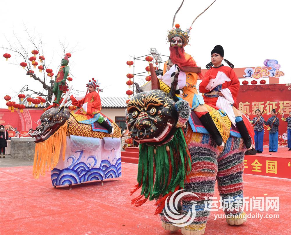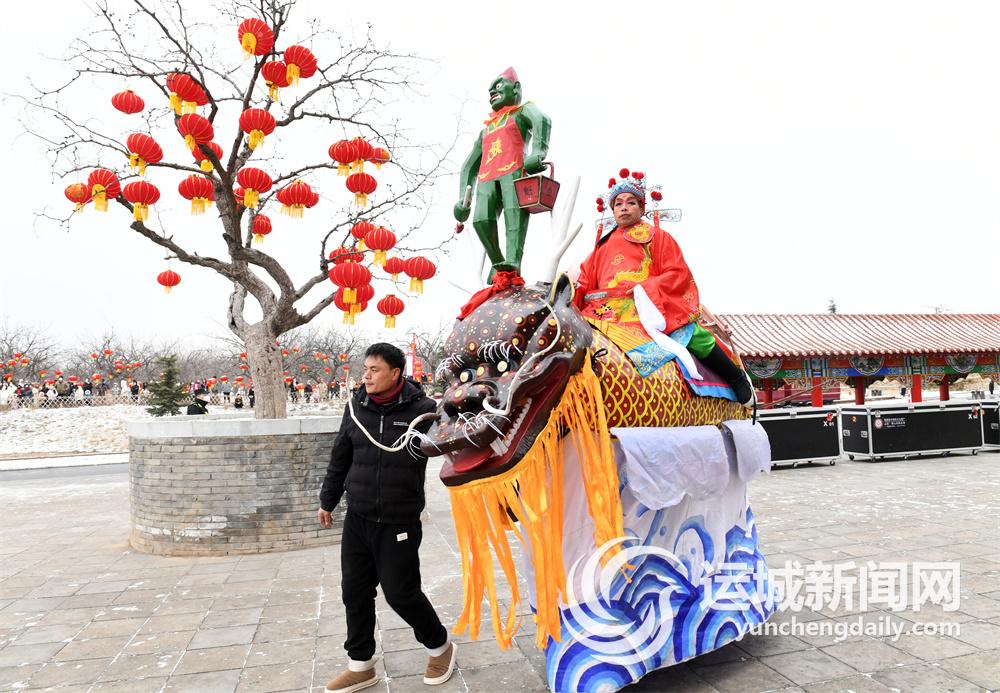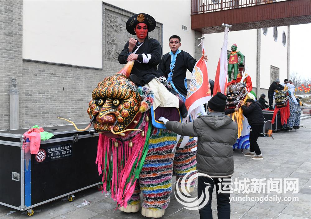 春节临近,稷山县清河镇阳城村的民间艺人在表演传统舞蹈高跷走兽。