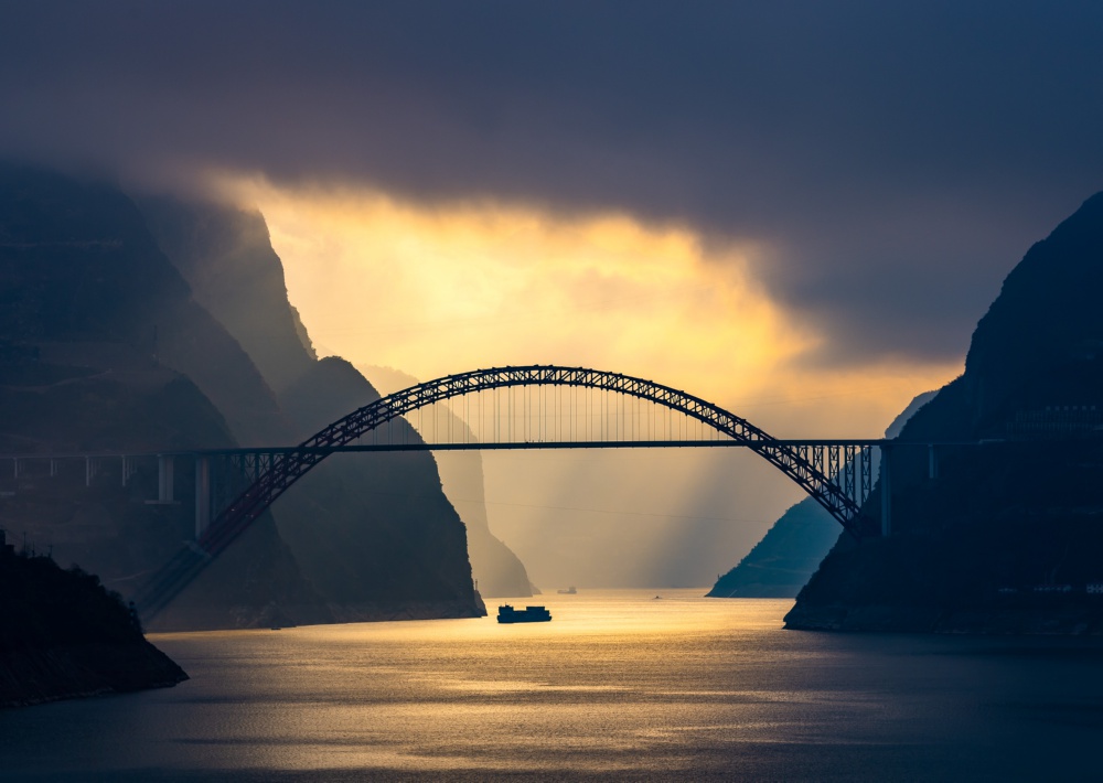 1月18日,船舶行驶在长江三峡湖北省宜昌市秭归县水域。 日出三峡,云蒸霞蔚,如梦如幻,美不胜收。新华社发(郑家裕 摄)