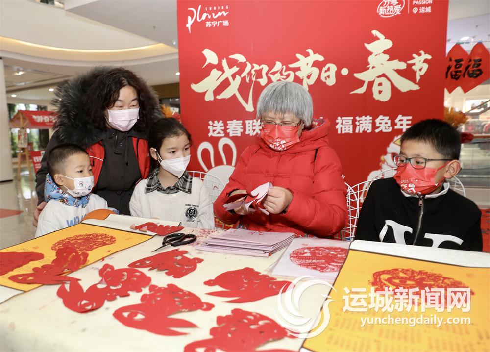 1月14日,由市委宣传部、市文明办、运城日报社、市新时代文明实践指导中心主办的“我们的节日·春节”主题之“送春联、剪窗花、福满兔年”活动在运城苏宁广场举办,邀请本地书法家和剪纸传承人为群众免费书写春联以及创作“兔”元素剪纸作品,为即将来临的春节增添了浓浓的喜庆年味。