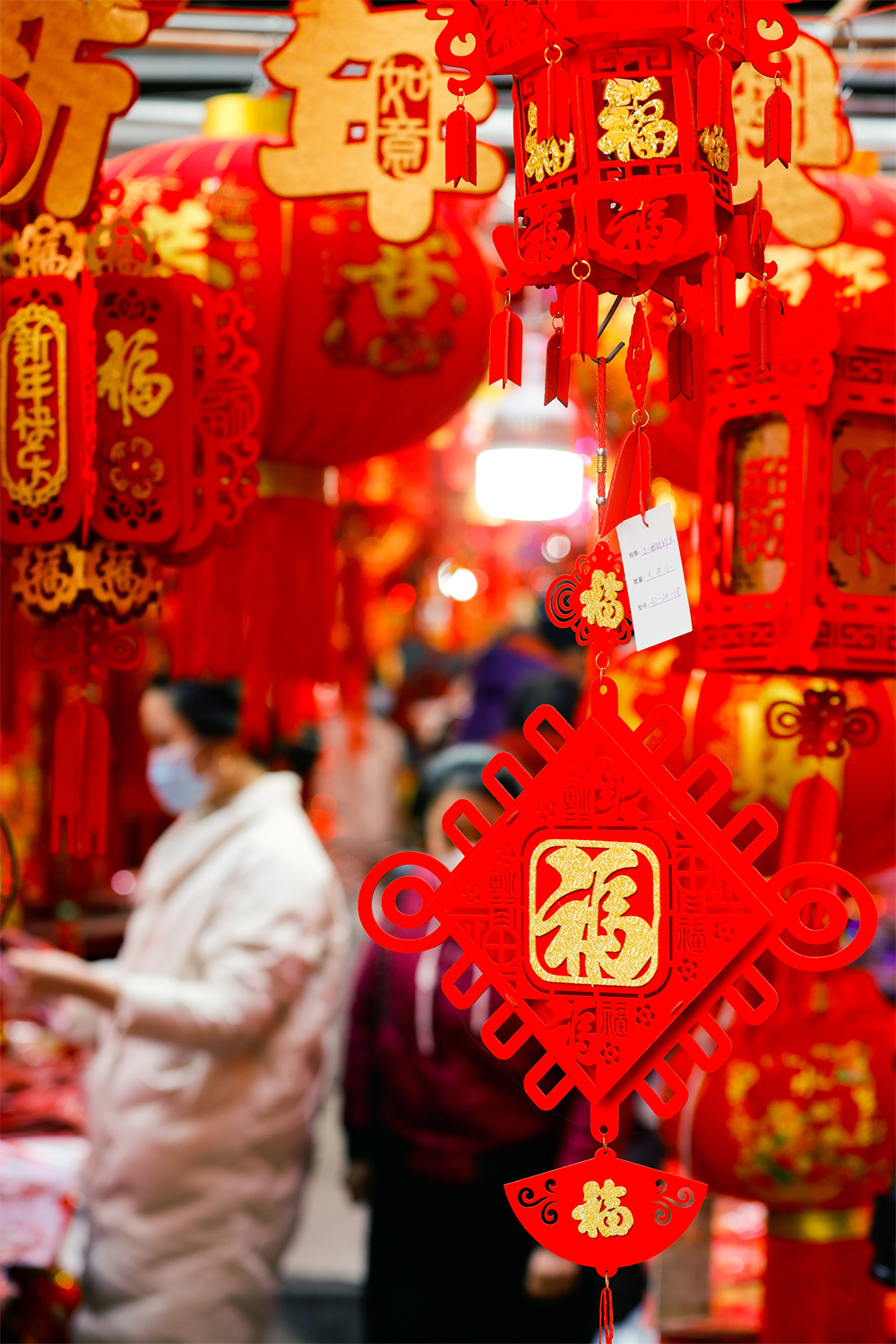 1月19日,人们在四川成都荷花池批发市场选购节庆用品。