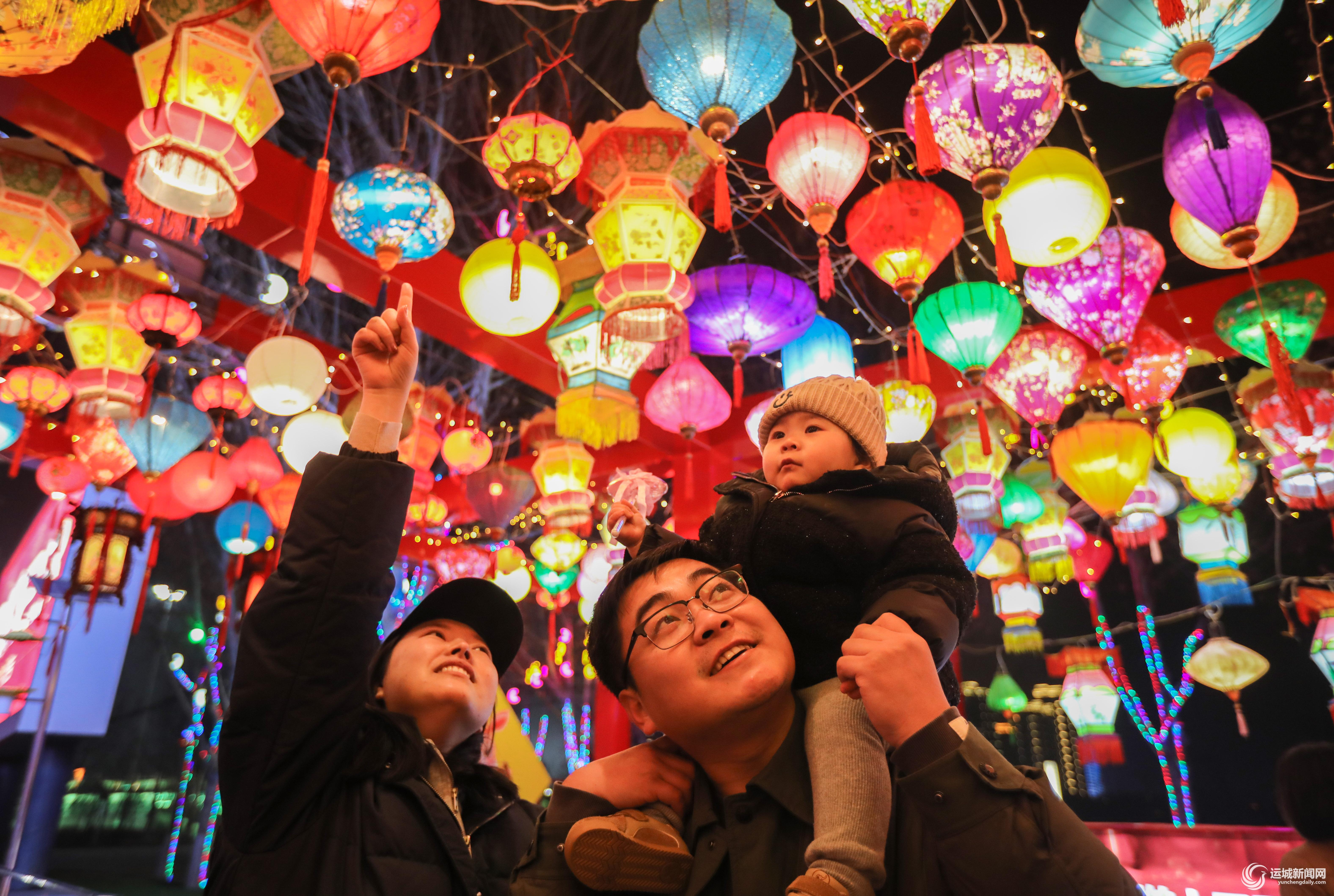 1月22日晚,街头赏花灯过大年的市民。 今年春节期间,我市在中心城区主要街道、十字路口、公园广场等重点场所满挂花灯,喜迎新春佳节。本报记者 金玉敏 摄