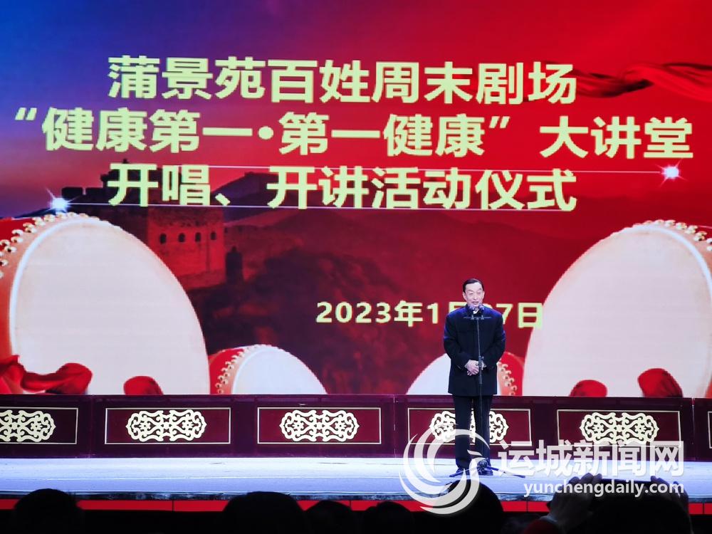 运城晚报讯(记者 王捷)1月27日,蒲景苑周末百姓剧场“健康第一·第一健康”大讲堂开唱、开讲活动仪式举行。这标志着三晋文化研究会“健康第一·第一健康”专业委员会、山西省爱民健康基金会联合蒲景苑,将每周为广大运城观众送上“看蒲剧名家唱戏、听健康专家讲课”的健康大讲堂。