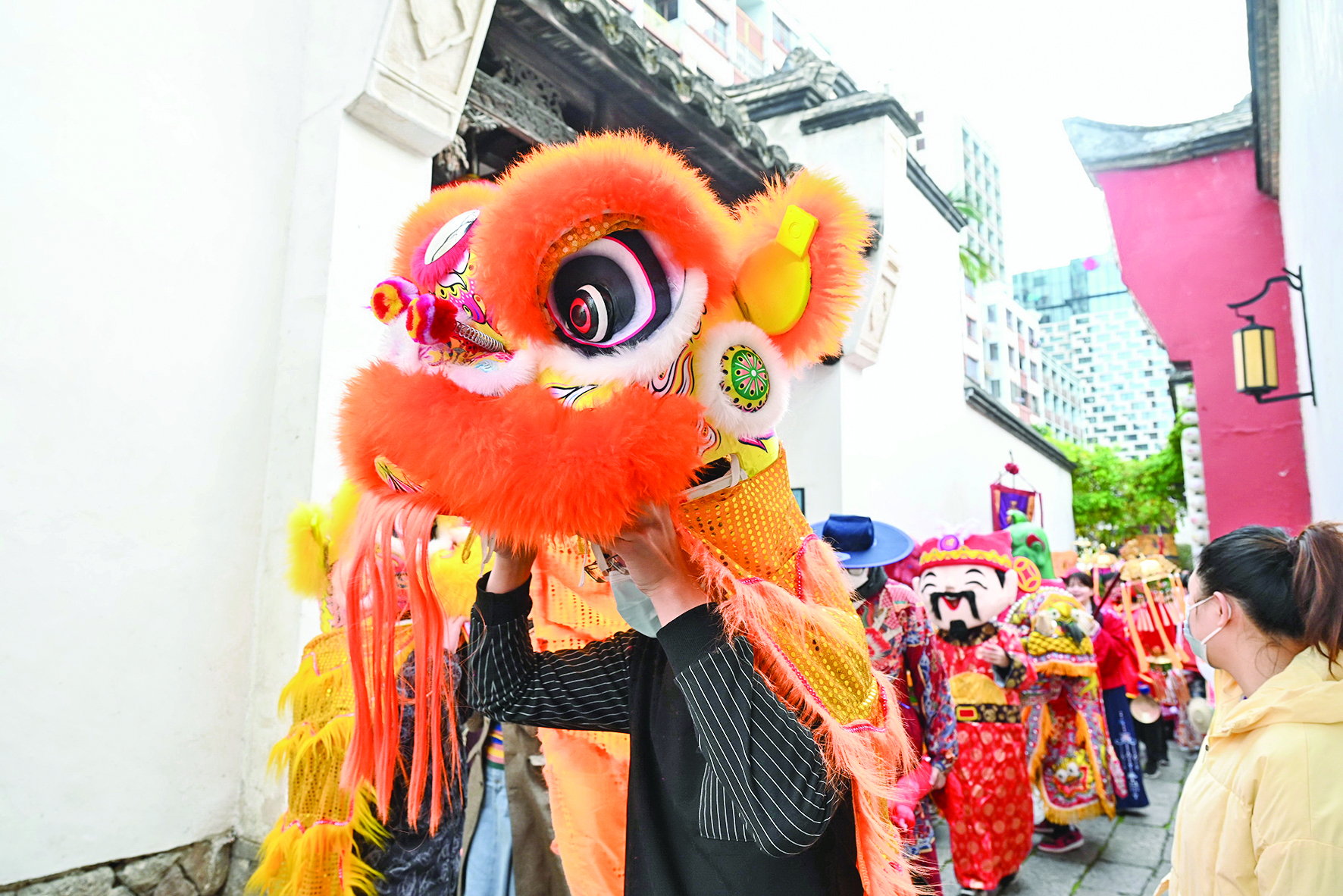1月26日是农历正月初五,在福建省福州市三坊七巷,“正月初五迎财神”民俗巡游队伍在巡游,祈福贺新春。 新华社记者 林善传 摄