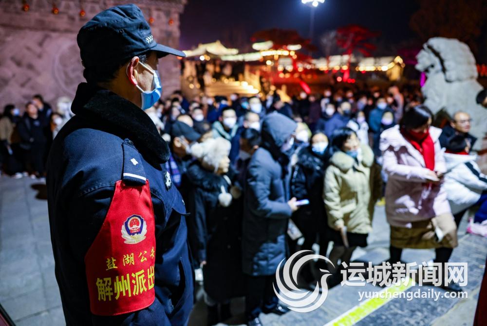 解州派出所辖区包含了解州关帝庙和常平关帝庙家庙两大热门景区。假期全员上岗是该所的“常规操作”。如何应对春节期间景区游客接待量暴增,保证节日安全?除了所有民警打起十二分的精神外,盐湖公安分局还提前制订预案,每天抽调上百名民警到景区参与巡逻执勤。