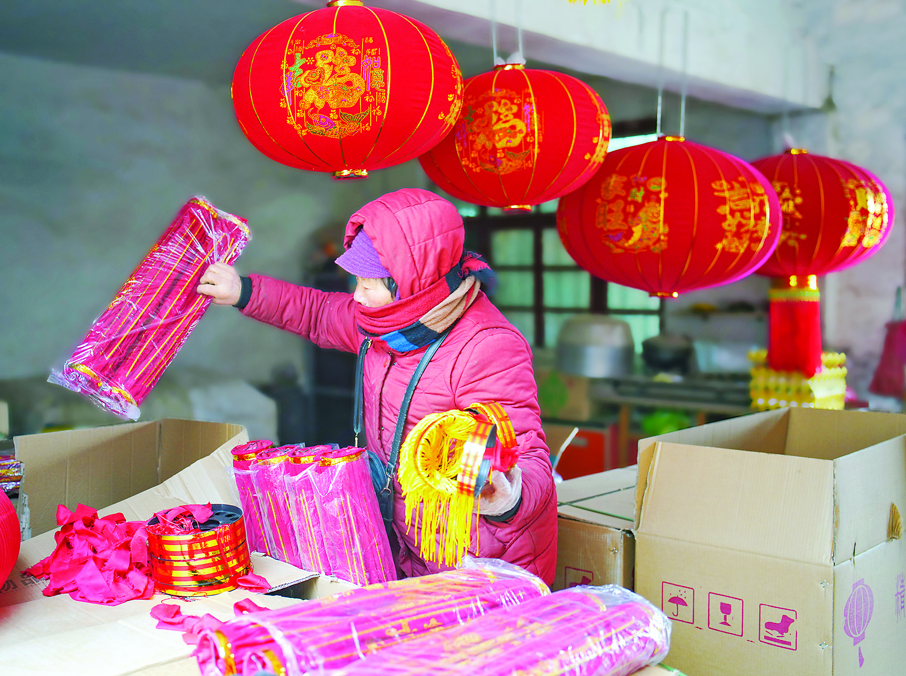 记者采访时,是农历腊月二十六,村里的灯笼生产已经全部停工,库房存储的灯笼成品也已售空。