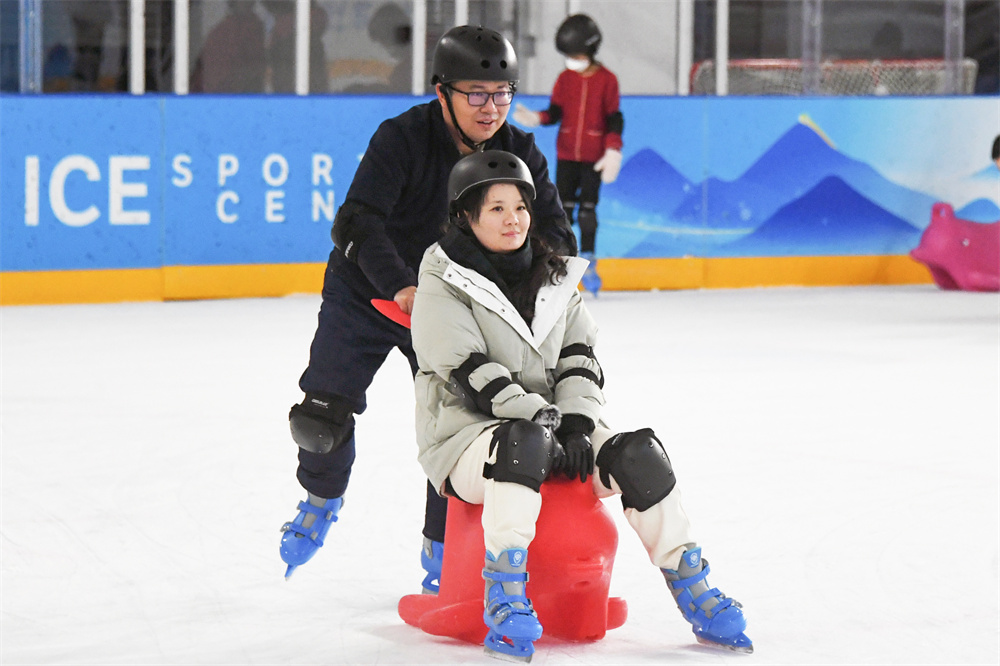 人们在“冰立方”冰上运动中心滑冰(1月23日摄)。