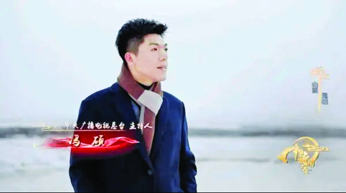 《2023中国诗词大会》第二期,中央广播电视总台外景主持人冯硕置身于银装素裹的运城盐池。(视频截图)