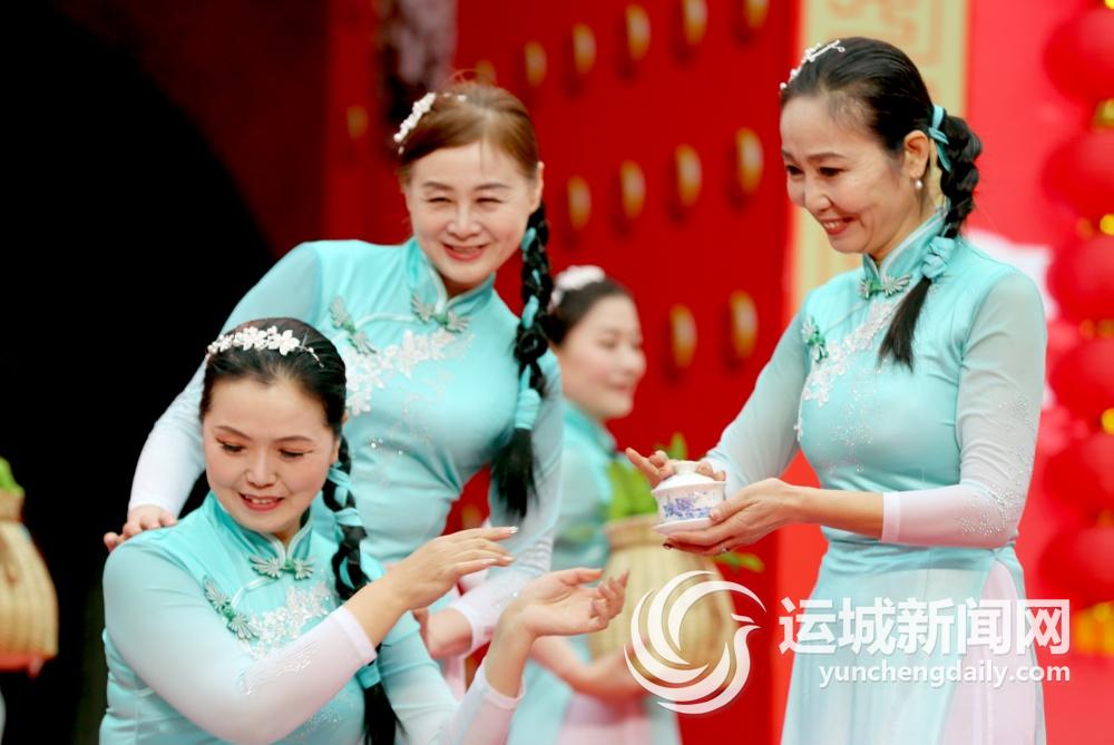 当天,市区盬街钟楼前,歌舞欢腾、喜气洋洋。热闹欢快的歌舞表演,将现场气氛点燃。激情澎湃的桌子戏《黄河流过咱门前》仿佛让人们看到了九曲大河的波澜壮阔;歌伴舞《鲁因挂面之歌》再现了传承百年的夏县鲁因挂面制作技艺;古琴书表演《司马光训俭示康》传递出浓浓的家风家教家国情怀;旗袍秀《中国茶》优雅地展示了“千年茶韵溢今朝”的美好意境;小品《情怀》生动形象表现了人们对革命先辈的崇敬之意;《少年中国鼓》则敲出了“少年强则国强”的豪迈之情;还有活泼灵动的眉户小戏《春风春韵眉户人》、慷慨激越的河东说唱道情《幸福社区绽新容》……