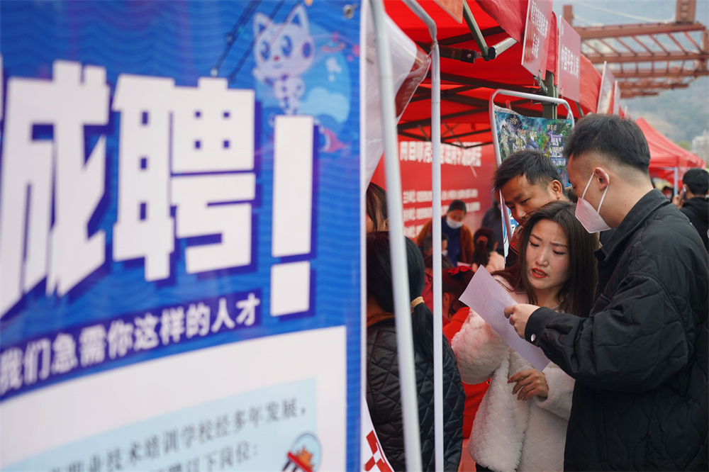 2月1日,求职者在招聘会上咨询岗位信息。当日,江西省南昌市湾里管理局开展“春风行动暨就业援助月”线下招聘活动,来自食品药品、物流快递、信息科技、餐饮服务等行业的60余家企业为当地求职者提供了1200多个就业岗位。