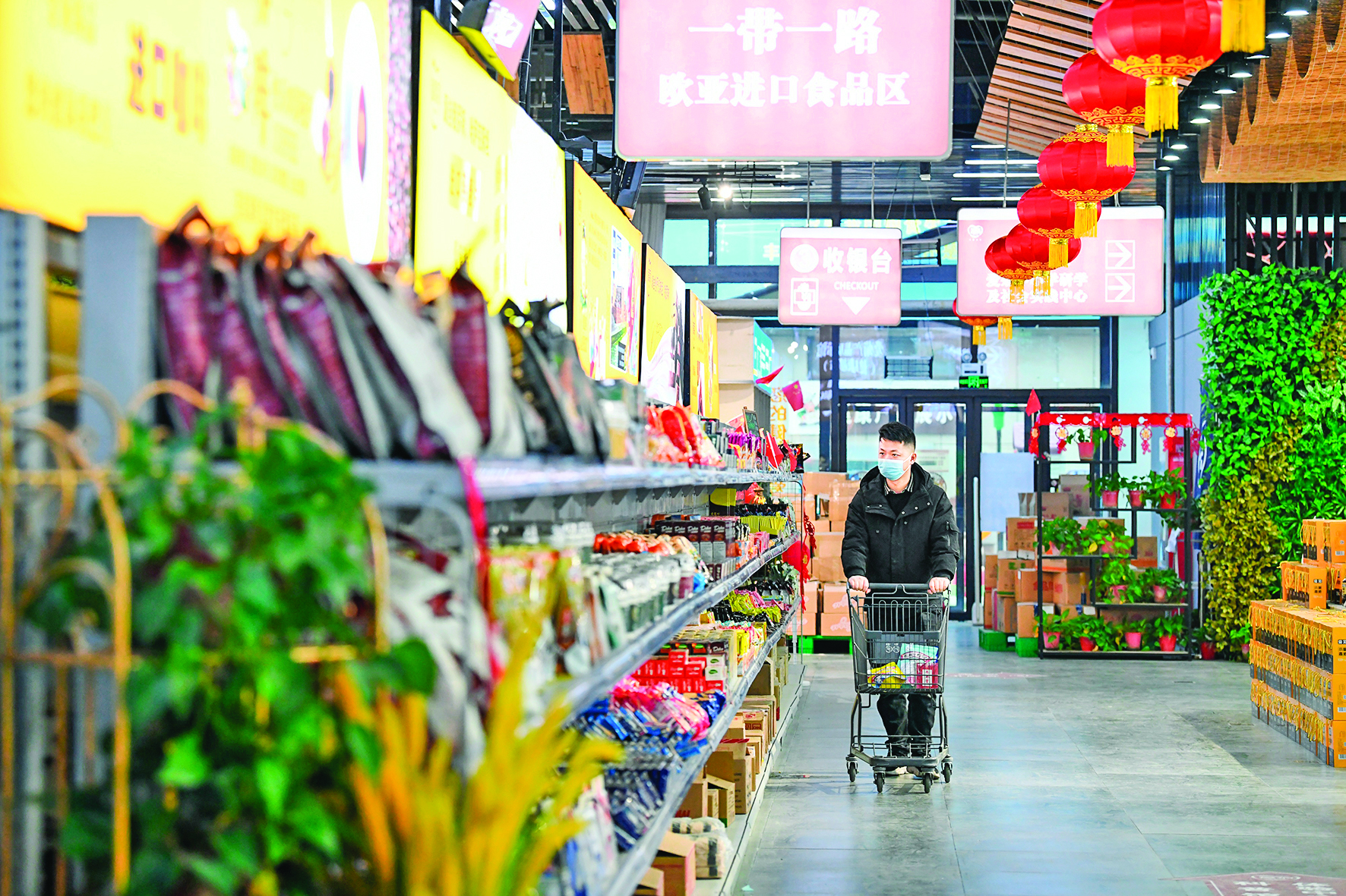 1月13日,在位于西安国际港务区的爱菊健康生活体验馆,消费者挑选进口食品。