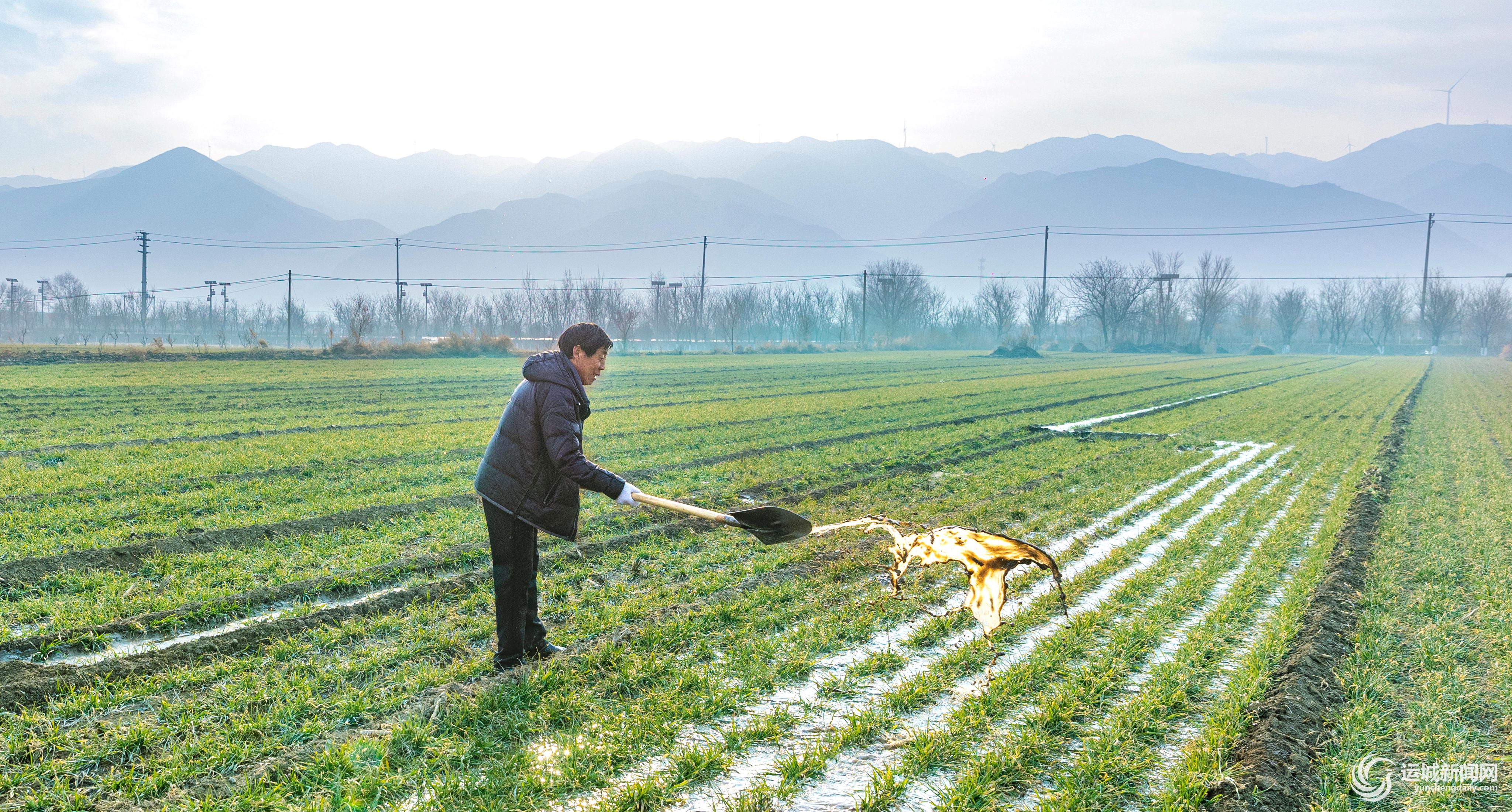 2月4日是立春日,春回大地,万物复苏。在盐湖区解州镇曲村的田间地头,渠水蜿蜒流淌,农民紧抓农时春浇小麦,为今年粮食丰产丰收打基础。 特约摄影 杨建峰 摄