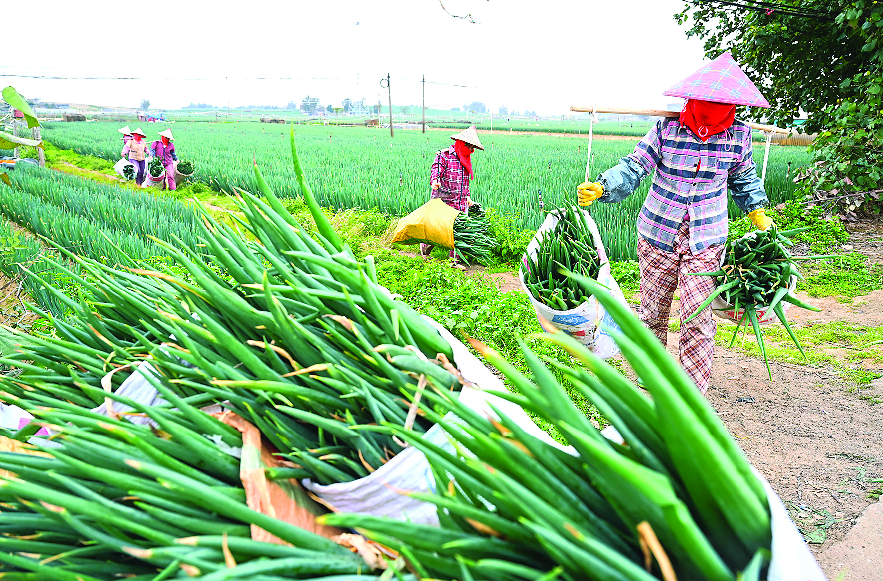 2月4日,在福建省漳浦县六鳌镇的一处农田,村民挑运采收的大葱。漳浦县是国家现代农业示范区,是福建省蔬菜外调、出口大县。蔬菜产业是漳浦县的传统特色优势产业。目前,当地正值大葱收获的繁忙季节。 新华社记者 林善传 摄