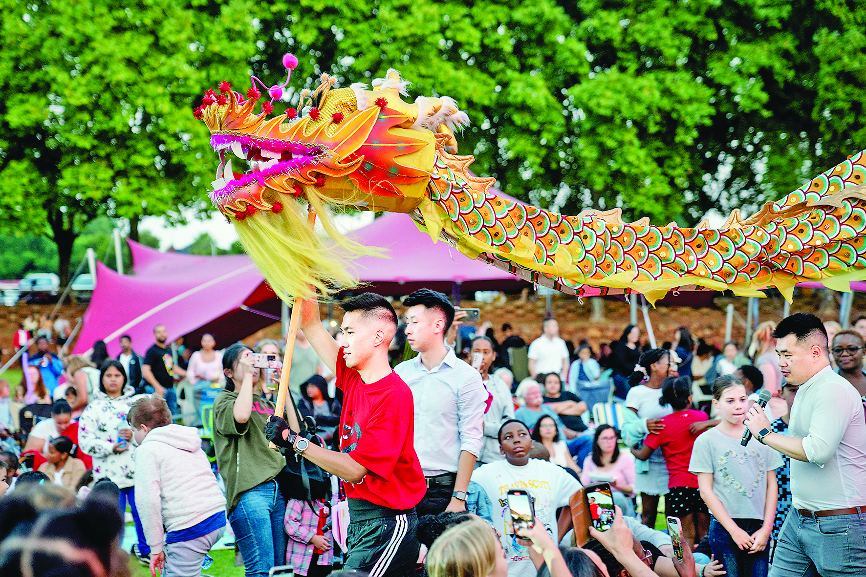 ▲2月4日,在南非约翰内斯堡举行的元宵节及中国农历新年庆祝活动中,观众观看舞龙表演。 新华社发