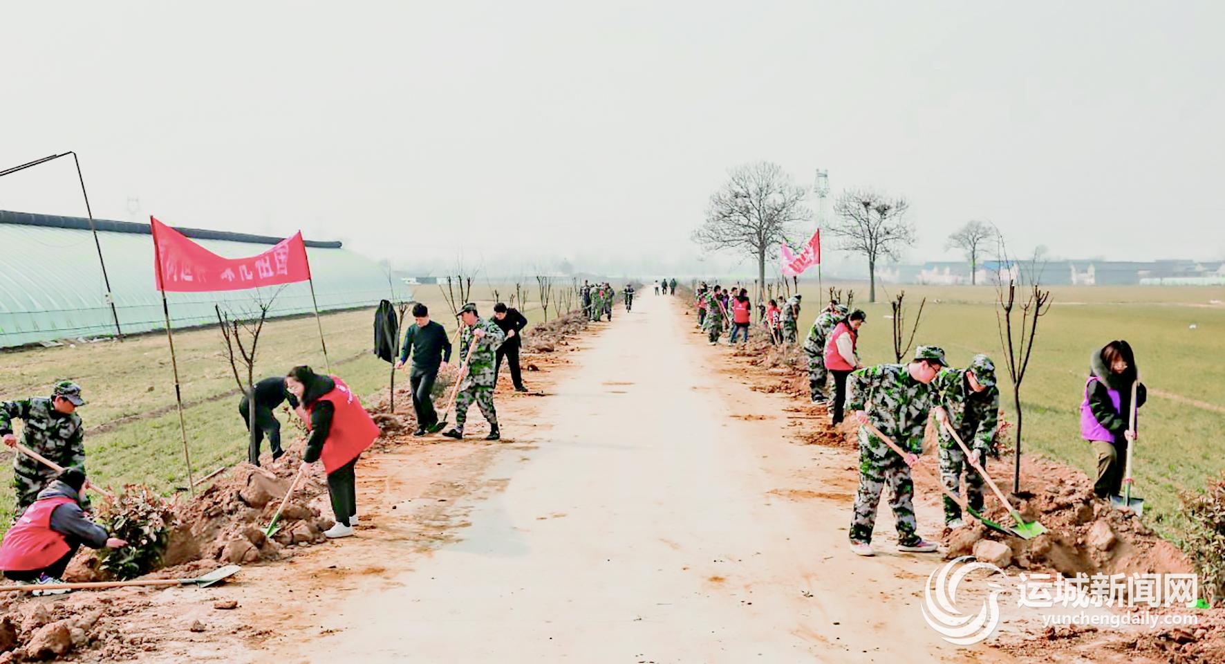 ▲2月6日,在主题党日活动后,夏县南大里乡党委组织机关全体党员干部、志愿服务队、青年民兵、村“两委”干部,在辛董村田间生产路上义务栽植紫叶李、红叶石楠等风景树,为大地增添一片新绿,同时努力开创新时期农村党建工作,助推农旅融合特色产业发展和乡村振兴。