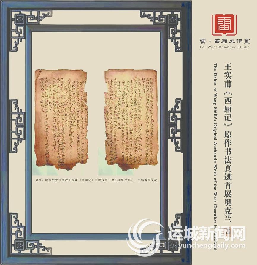 雷建德介绍,王实甫《西厢记》原作书法手迹,十分珍贵。1978年,北京中国书店曾发现四片《新编校正西厢记》刻本残页,被粘在元刻本《文献通考》书背上,经鉴定为最早的元代《西厢记》刊本而轰动一时;1986年,一个牧民在新疆维吾尔自治区且末县塔提让乡“苏伯斯坎”古遗址处,无意中发现了一张元代时期遗留的董解元《西厢记》手抄本残页。这片残页长21.8厘米、宽27厘米,距今近800年历史,也是用黄麻纸书写的,内容从“倚定门儿手托腮”开始,止于“夫人烧罢夜香来”,是古本董解元《西厢记》中《仙吕调·赏花时》的手抄本残页,现由新疆巴音郭楞蒙古自治州博物馆珍藏,被誉为国宝级的珍品。