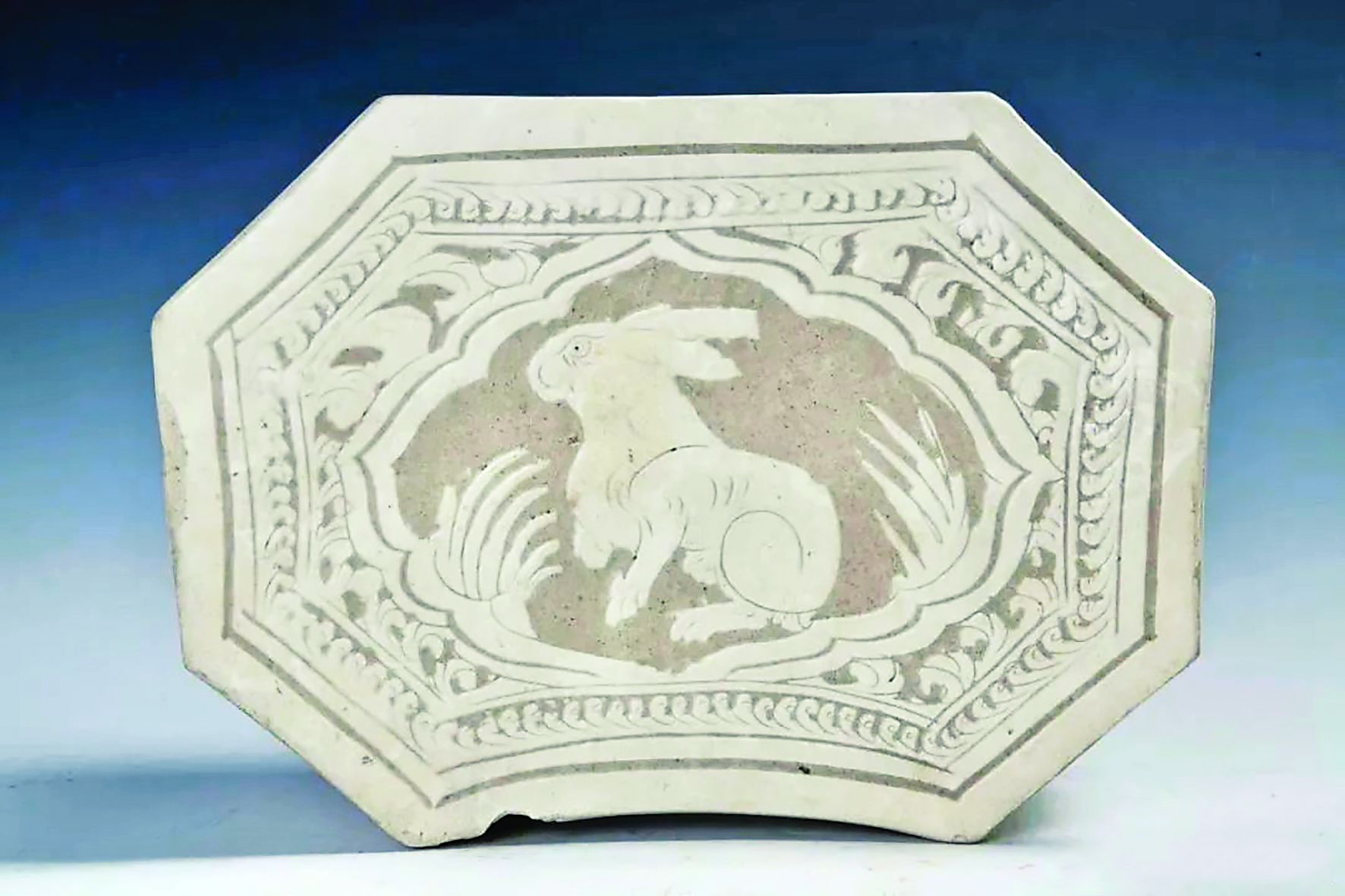 ▲北宋磁州窑白釉剔花兔纹八方枕 天津博物馆藏 (资料图)