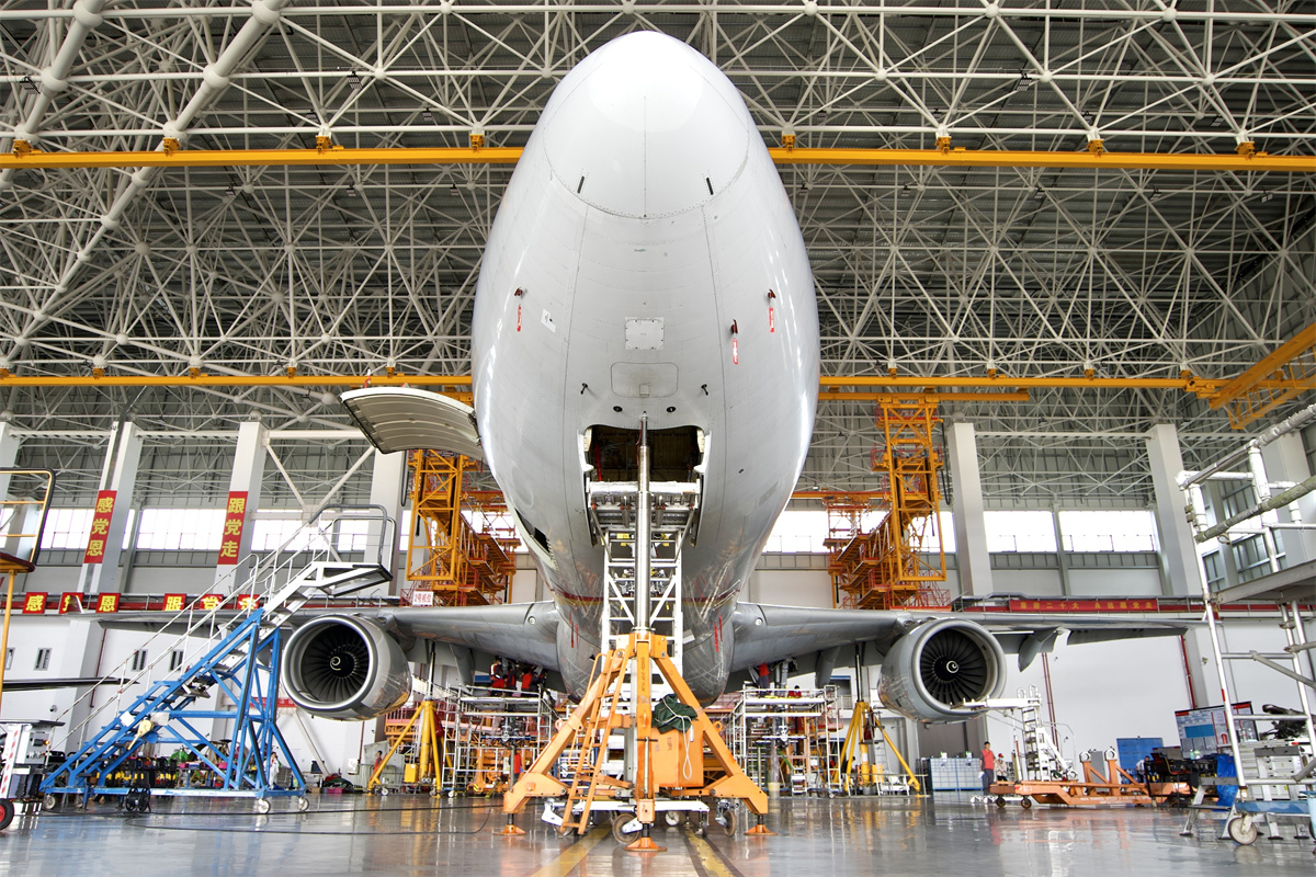 这是在海南自贸港一站式飞机维修产业基地大修机库内进行维修的香港航空空客A330飞机(2月8日摄)。