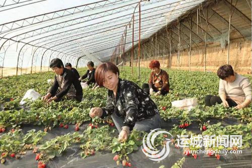 近日,到绛县大交镇草莓产业园区采摘草莓的游客络绎不绝。一颗颗、一棚棚红艳艳的草莓映红了农户的脸庞,甜在他们心里。