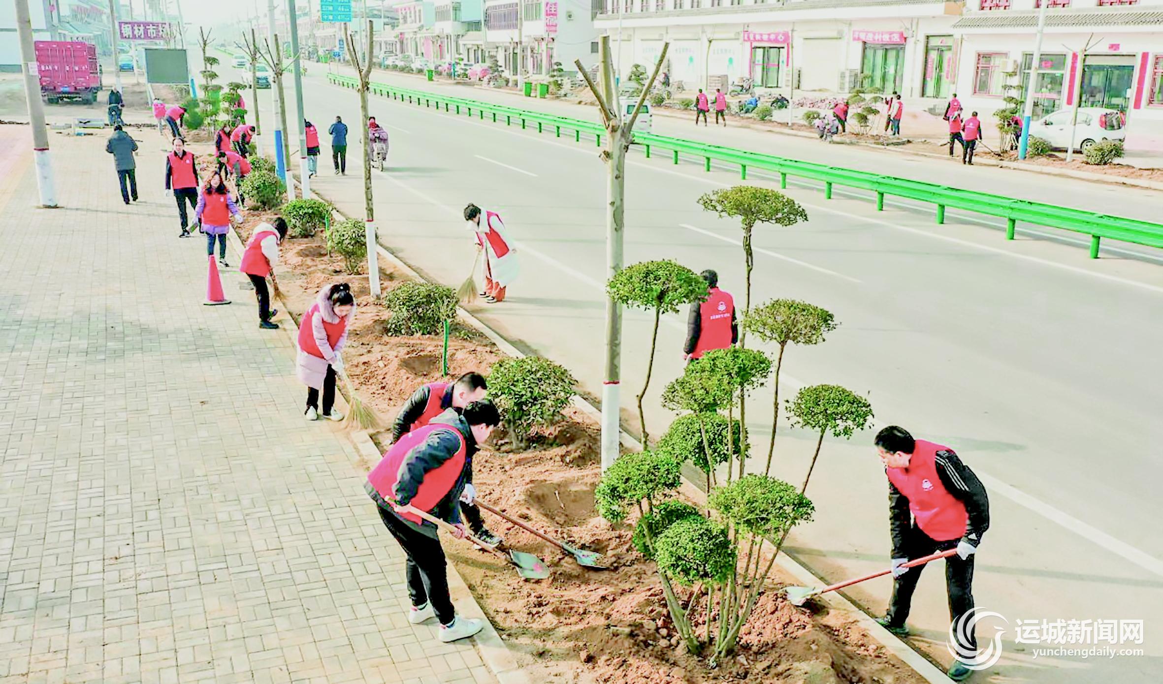 ▲2月10日,夏县庙前镇志愿者在沿街绿化带和泰山公园义务植树,栽植女贞、梧桐、月季、石楠等苗木2300余株,为打造绿色交通长廊和旅游名镇添砖加瓦。 张秀峰 王琳玉