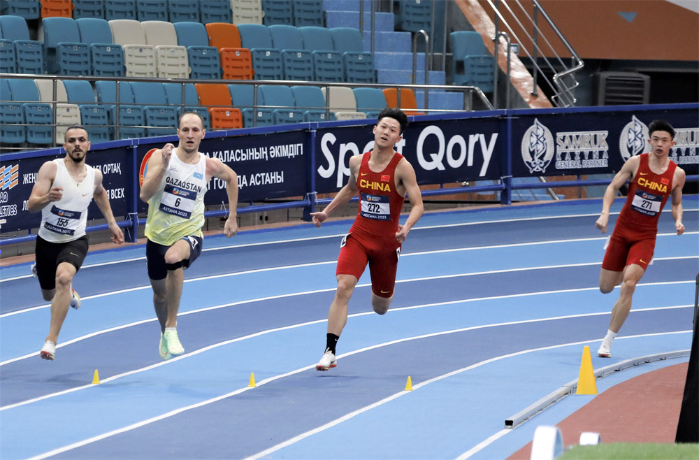 当日,在哈萨克斯坦首都阿斯塔纳举行的2023亚洲室内田径锦标赛男子400米决赛中,中国选手樊添瑞以47秒30的成绩排名第三。队友顾晓飞位列第五。 新华社发