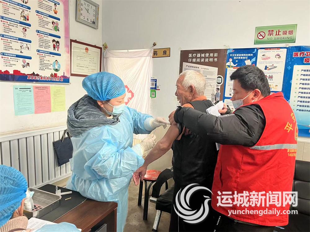 2月12日,夏县尉郭乡志愿者与乡卫生院医护人员组成疫苗接种小分队,下乡为老年人接种疫苗。