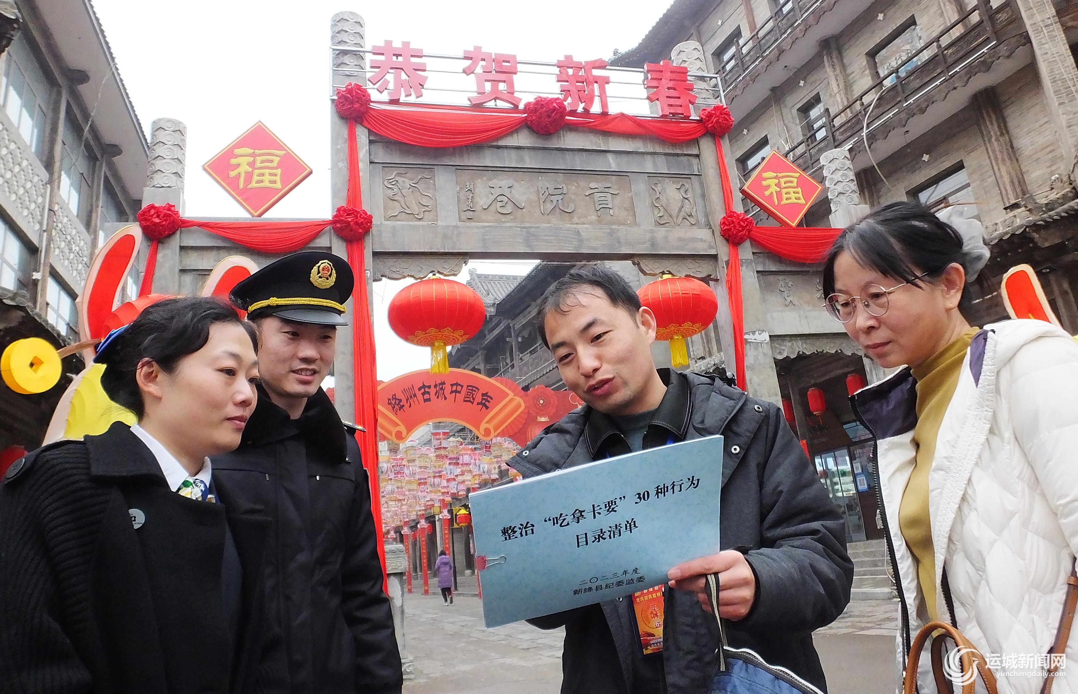 2月9日,纪检监察干部带队在新绛县街头向群众宣传整治“吃拿卡要”优化营商环境专项行动的有关事项。