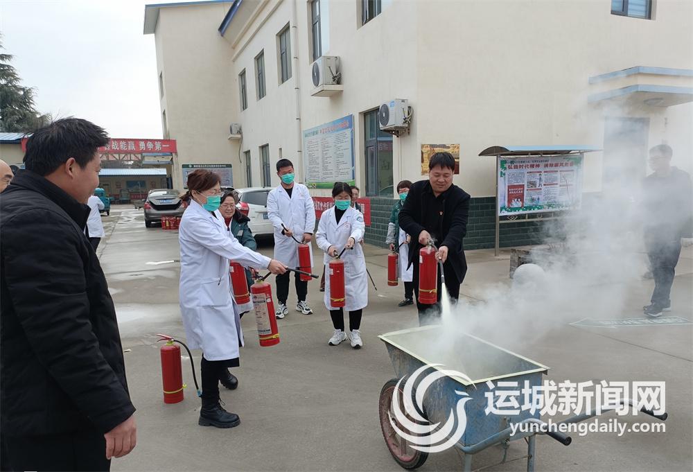 2月11日,临猗县耽子镇中心卫生院职工在院内举行灭火演练。