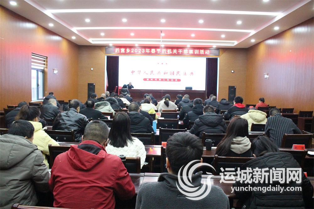 2月15日,闻喜县后宫乡机关干部在接受民法典知识培训。