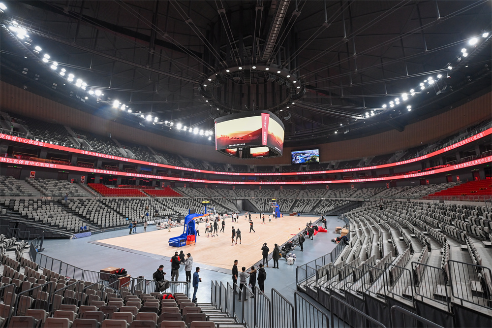 近日,乌鲁木齐奥林匹克体育中心综合体育馆正式启用,新疆伊力王酒队球员入驻新场馆开展适应性训练。