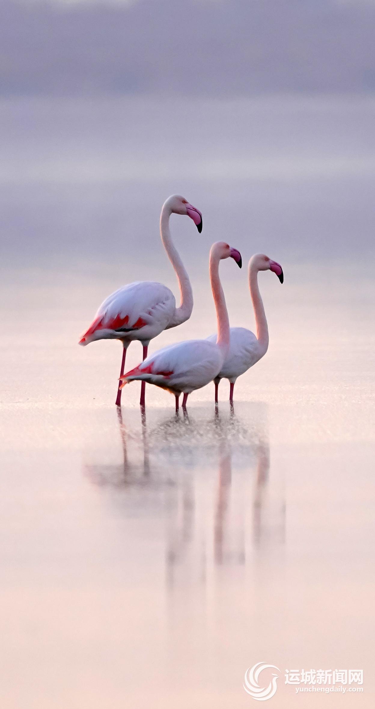 ▲国家一级保护动物火烈鸟悠闲地站在盐池中。近年来,我市结合黄河流域生态保护与高质量发展,统筹推进产业结构调整、生态保护,吸引了越来越多的候鸟在此栖息过冬。