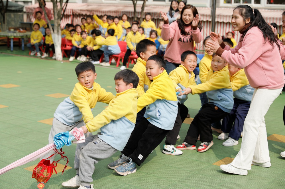 2月20日,江西省吉安市吉州区保育院的孩子们在“二月二,龙抬头”活动中参加拔河比赛。 新华社发(李 军 摄)