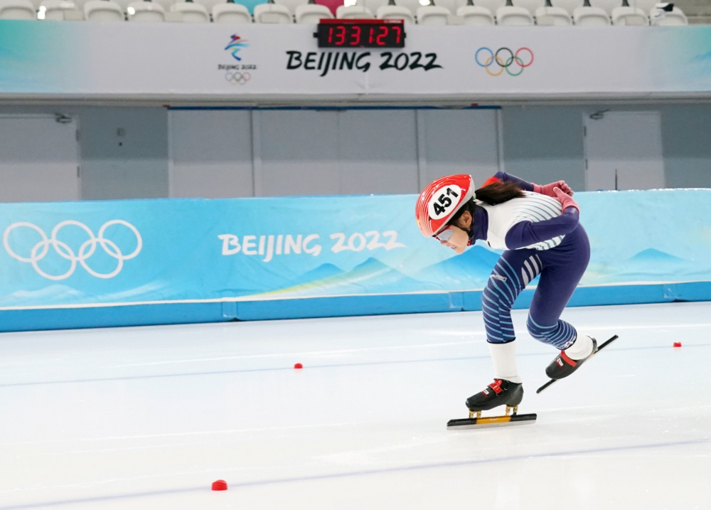 2023年2月4日,张骞予在国家速滑馆参加“冰丝带”市民速度滑冰比赛。
