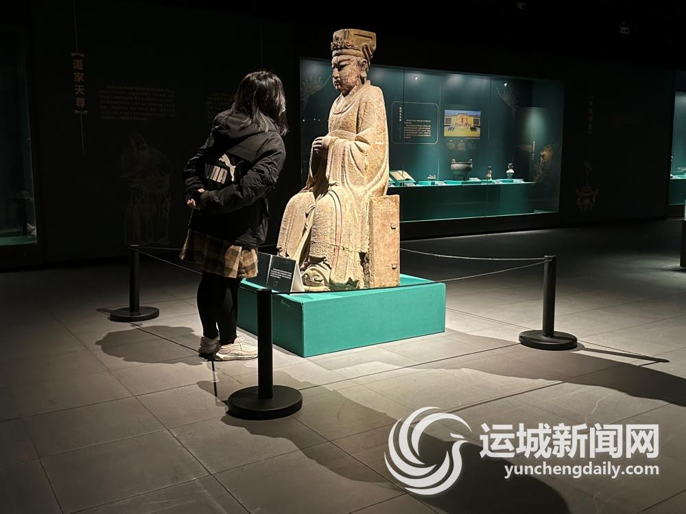 “在展厅中,我最佩服的就是独立柜的使用。”陈晓又来到“关娘娘铜坐像”正面,赞叹文物细节之精妙、保存之完好,同时还夸赞灯光的使用让文物更加鲜活起来。她特意把记者领到该文物的背后,“在灯光、镜面的映射下,关娘娘的样子完全呈现在玻璃柜上!这一刻,我觉得是关娘娘显灵了!”陈晓难掩激动的心情,表示有机会一定要去“关公故里”游览解州关帝庙。
