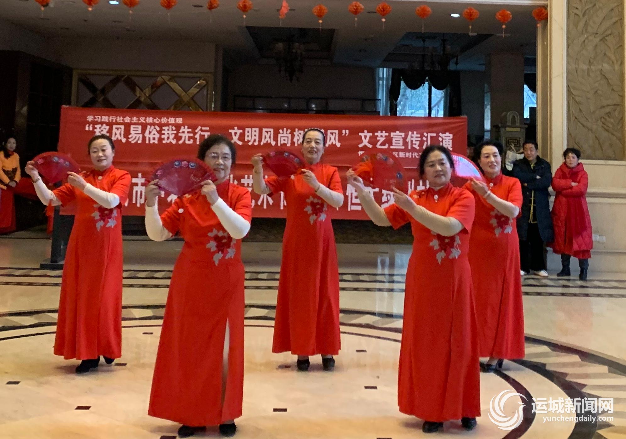 运城晚报讯(记者 寻霄)“我们倡导广大居民转变陈旧的思想观念,喜事不大操大办、不相互攀比,过节不奢靡浪费,人人争做文明新风尚的倡导者、实践者……”近日,盐湖区恒大绿洲社区举办“移风易俗我先行 文明风尚树新风”文艺宣传汇演(下图),通过歌声舞蹈,宣传文明新风尚,形成文明新风气。