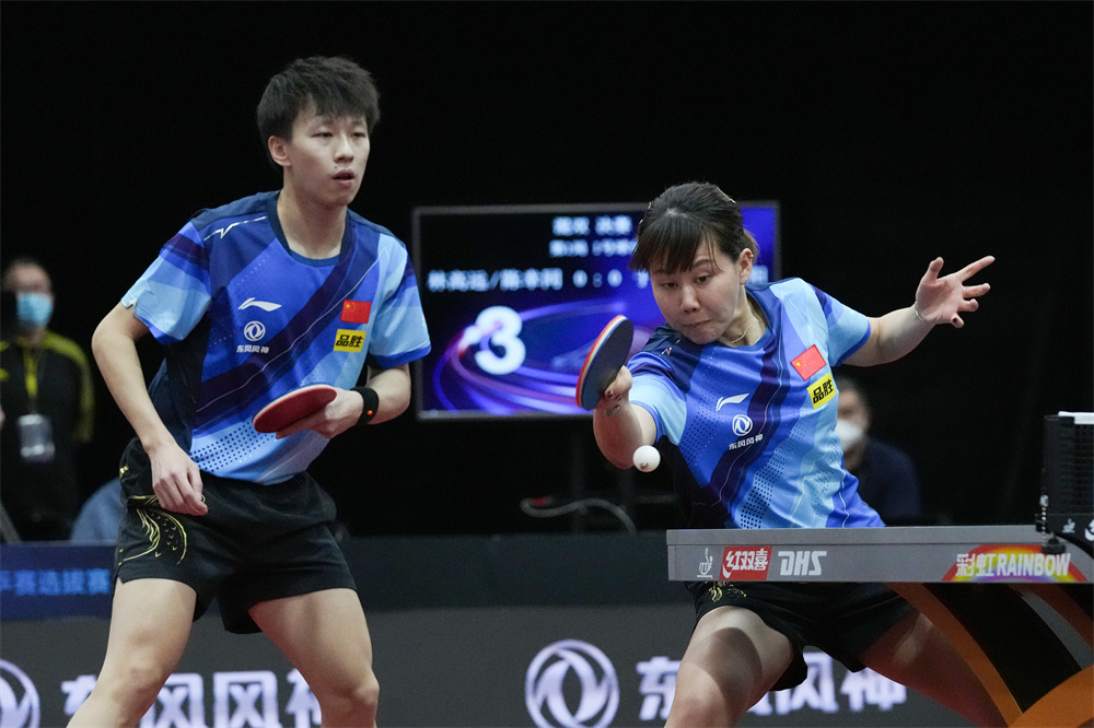 当日,在北京举行的中国乒乓球队“直通德班”世乒赛选拔赛混双决赛中,林高远/陈幸同以3比1战胜于子洋/孙铭阳,获得冠军。
