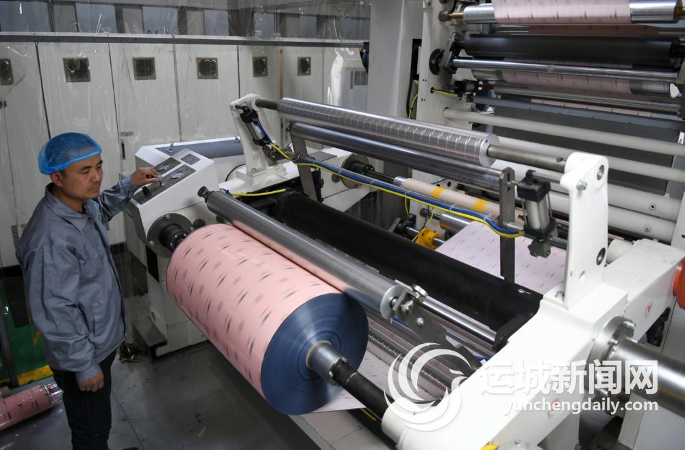 2月23日,稷山经济技术开发区翟店工业园内,山西兆龙新材料科技有限公司工人在加工食品包装袋。