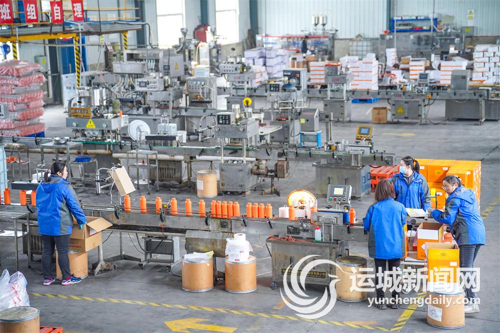 山西浩之大生物科技有限公司生产线上,工人将货物装箱。 记者 陈方斌 摄